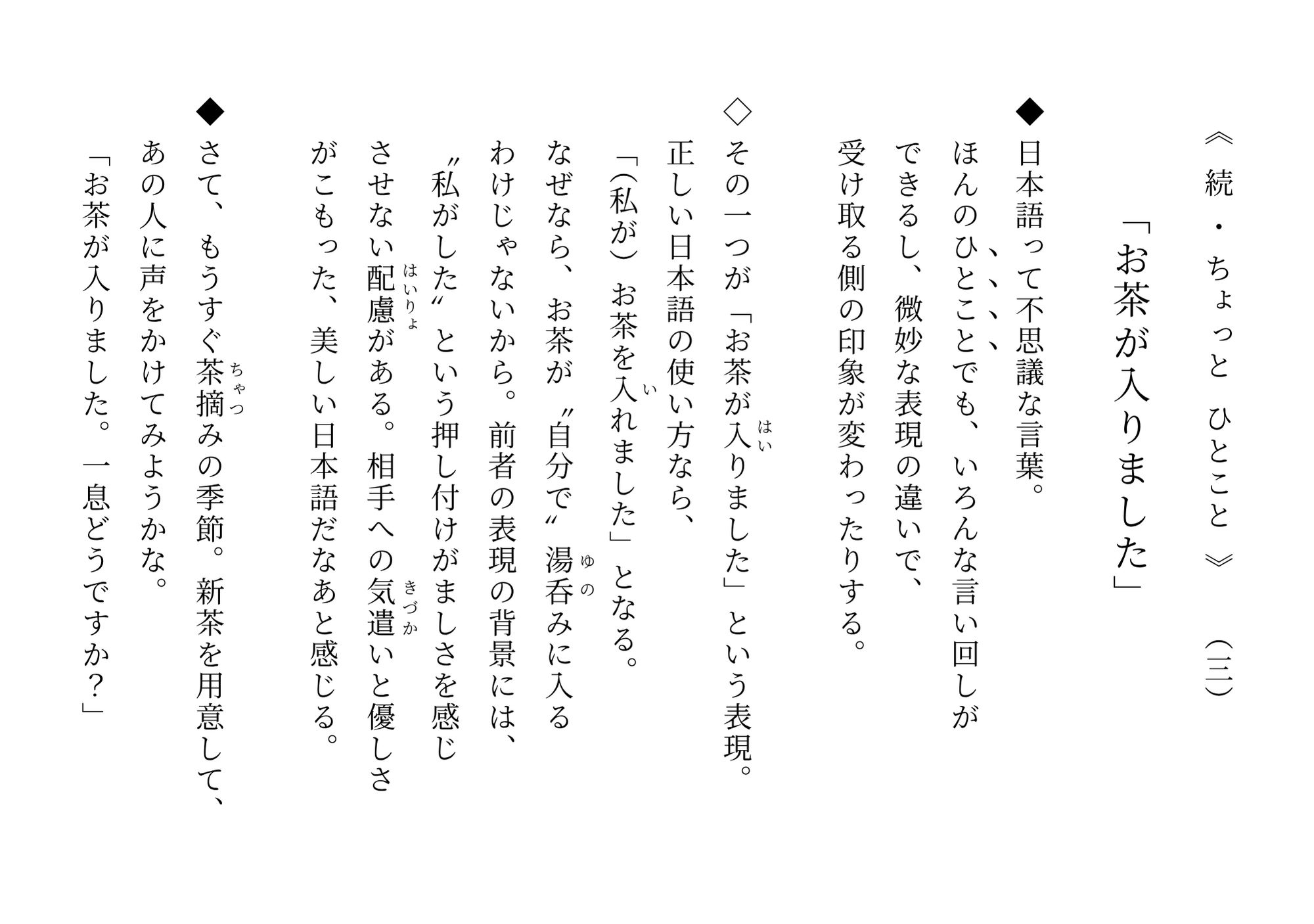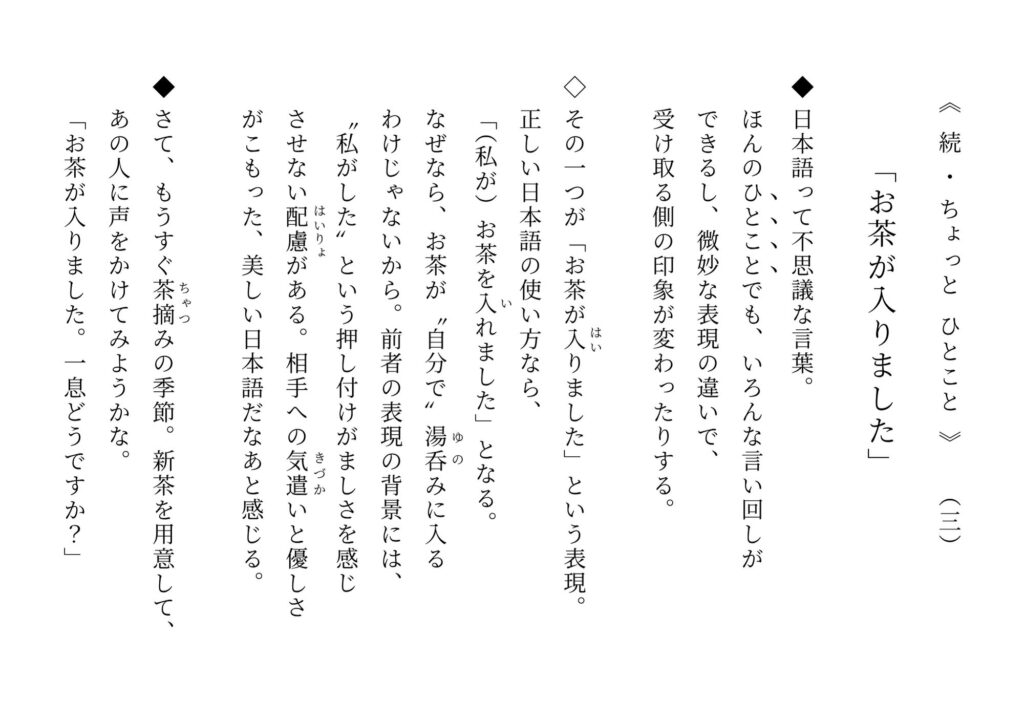 【No.3】続・ちょっとひとこと 「お茶が入りました」